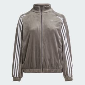 A fresh take on the iconic track top, this oversized velvet adidas design nods to sport heritage while elevating your style. It blends a luxurious feel with an effortless look. Trefoil embroidery and the iconic 3-Stripes down the sleeves connect you to a legacy of game changers and rule breakers. The loose, flowing shape creates a laid-back vibe perfect for pairing with everything from joggers to jeans. Made from plush velvet, it's a go-to for days you need a little something extra.